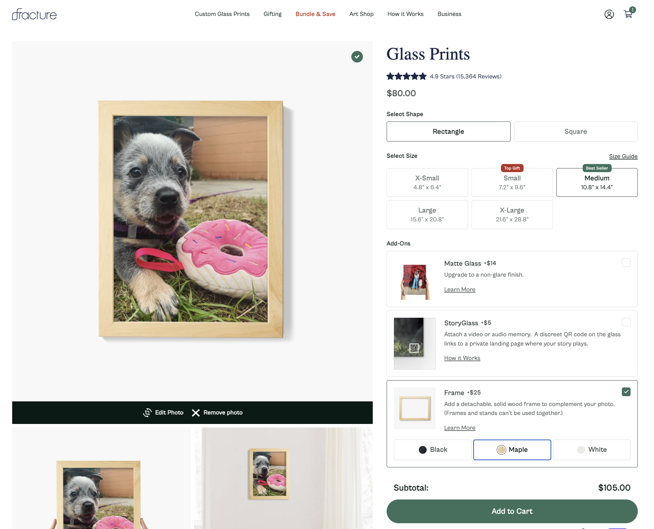 After uploading a photo and selecting the size you wish to order, you'll see options below that you can add to your print. (Like Matte Glass or Storyglass!)