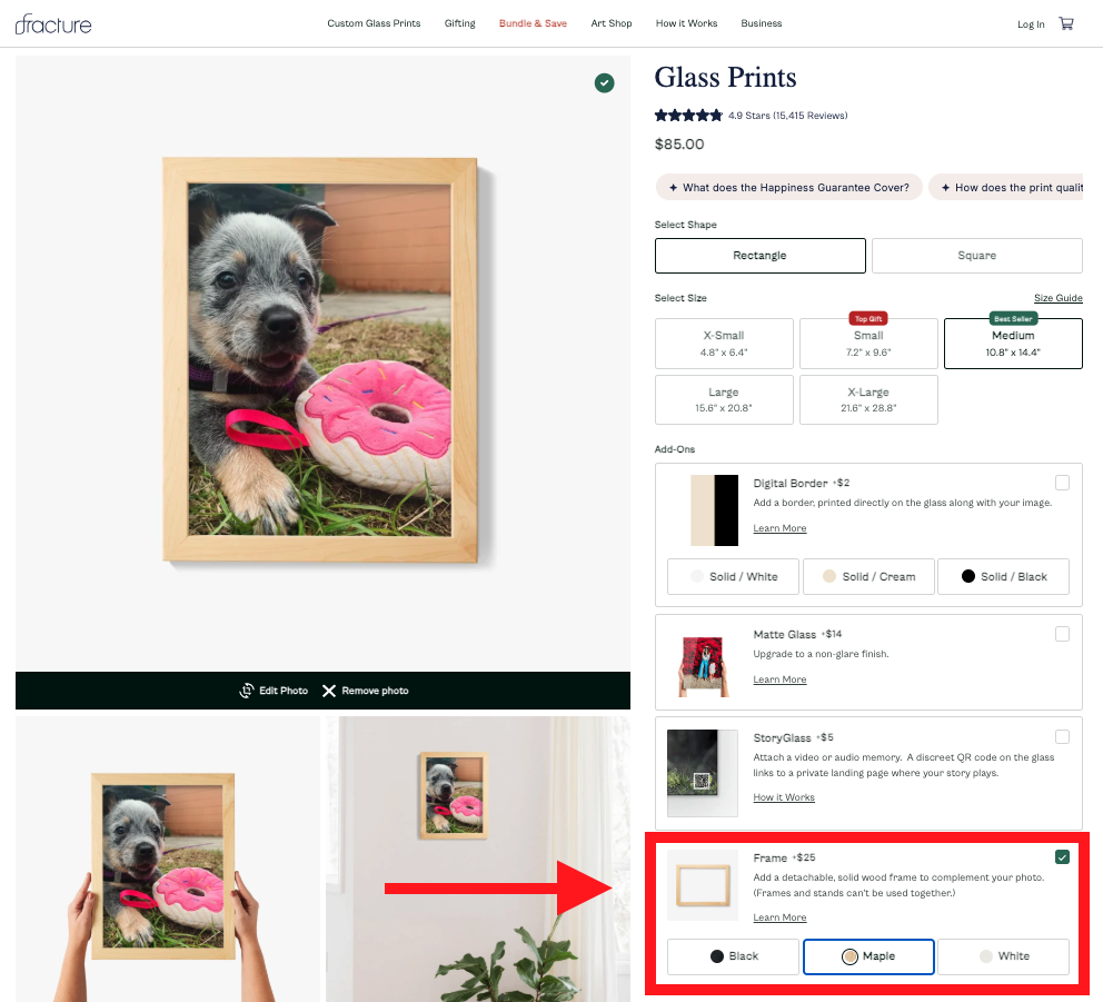 There are two different ways to purchase a Frame: to start, decide if you 1) plan to order the Frame with a new print, or 2) want to order it independently to use with a Fracture print you already own.